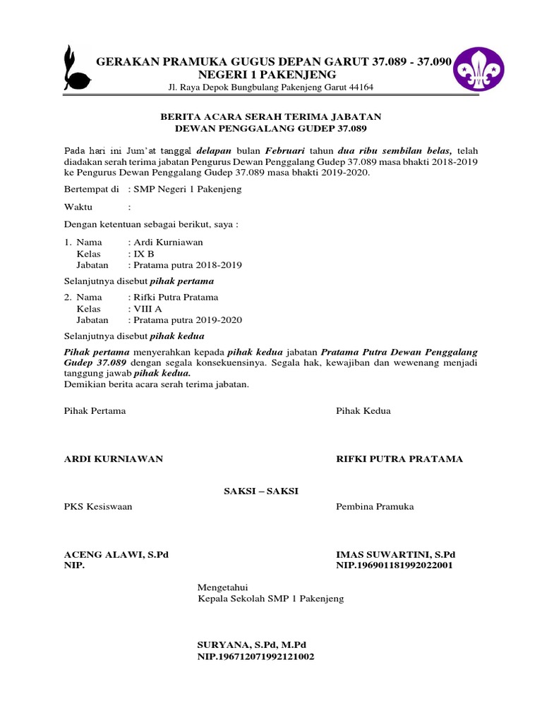 Isi Surat Keputusan Pelantikan Dewan Ambalan